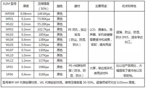 防水泡棉双面胶的型号性能与用途汇总