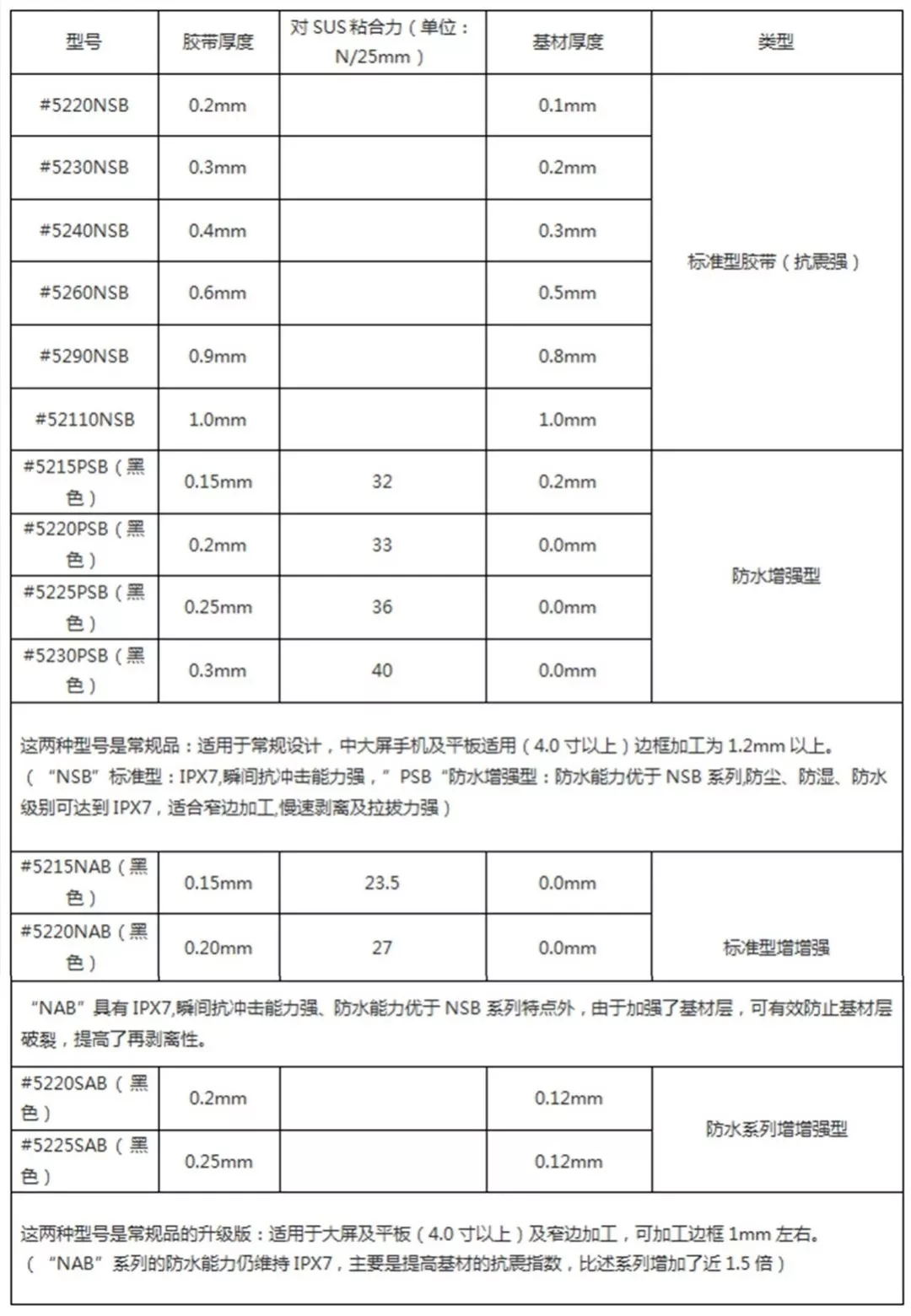 防水泡棉胶带#5200系列型号表:一般物性表